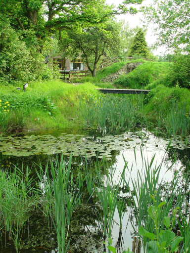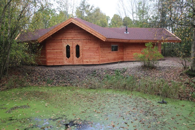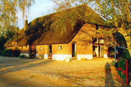 De rietgedekte boerderij (ons oorspronkelijke gebouw) gezien vanuit de Finse kota. Deze foto is trouwens ook de achtergrond van onze website!