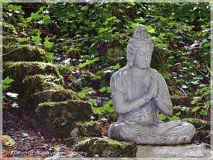 Boven: Er zit altijd iemand te mediteren op het verhoogde zitje bij de kota.....